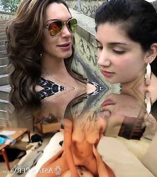 HOT BUSTY Girl takes Asian she-male's cock