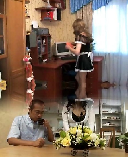 Curvy TS in sexy maid uniform caboose fucked by her sir