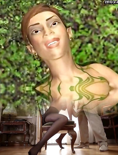 Animated tranny gets man meat kneaded