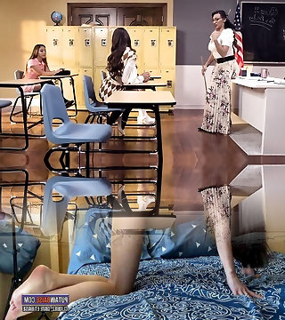 Lesbian students riding transgender princesses cock
